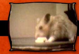 I have to say the Hamster is very aware of the camera at all times. He stares right into the camera acting like she some sort of Rock Star. It's kinda weird, but very religious for you in line Rosconians.